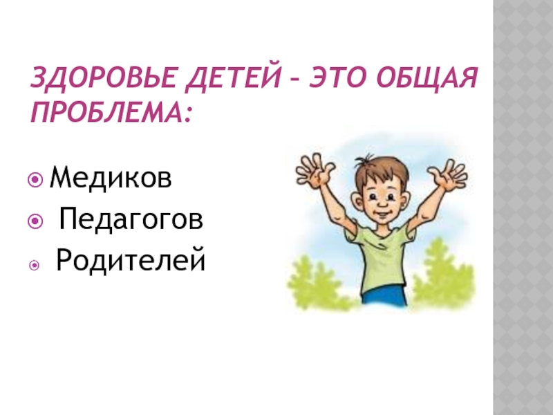 Слайд 3ЗДОРОВЬЕ ДЕТЕЙ – ЭТО ОБЩАЯ ПРОБЛЕМА: