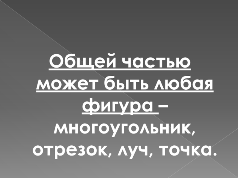 Слайд 3Общей частью может быть любая фигура – многоугольник, отрезок, луч, точка.