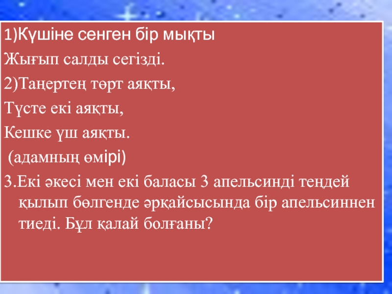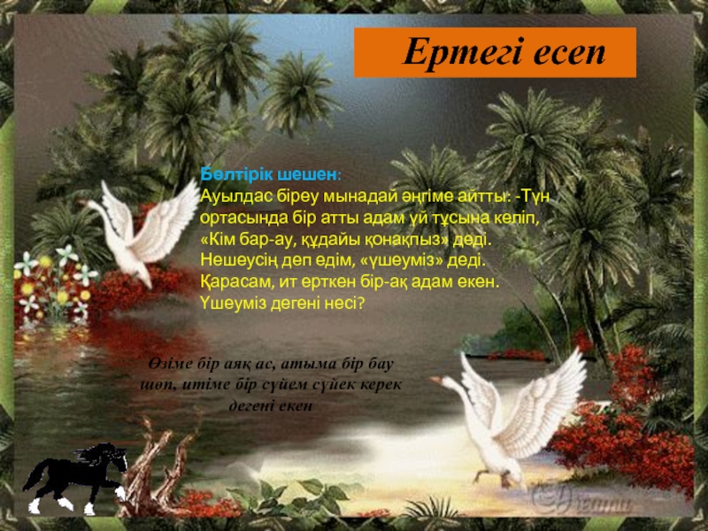 Өзіме бір аяқ ас, атыма бір бау шөп, итіме бір сүйем сүйек керек дегені екен