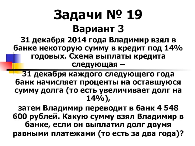 31 декабря 2014 года Владимир взял в банке