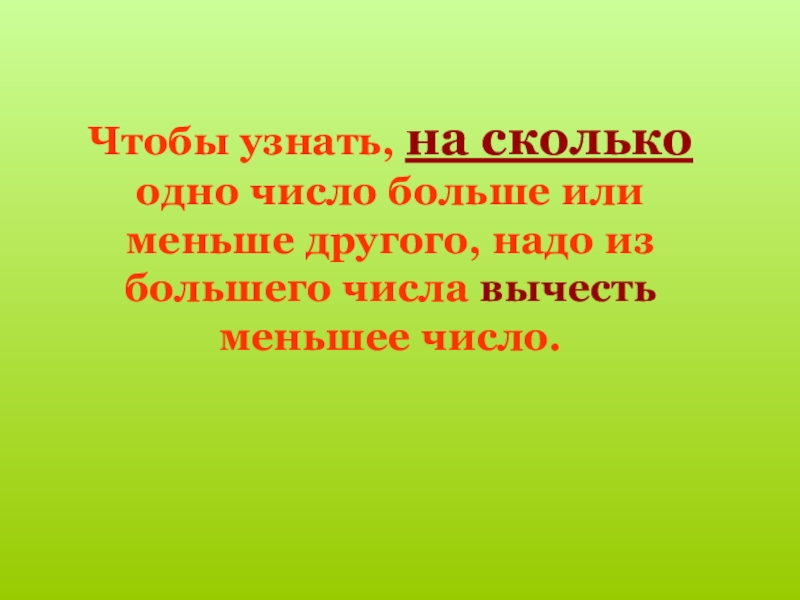 Слайд 4Чтобы узнать, на сколько одно число больше или меньше другого, надо
