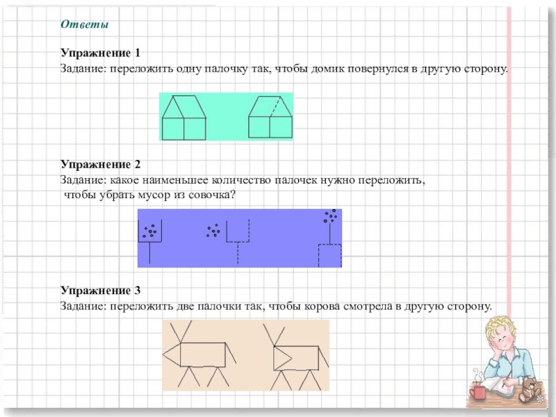 Задание: переложить две палочки так, чтобы корова смотрела в другую сторону.
