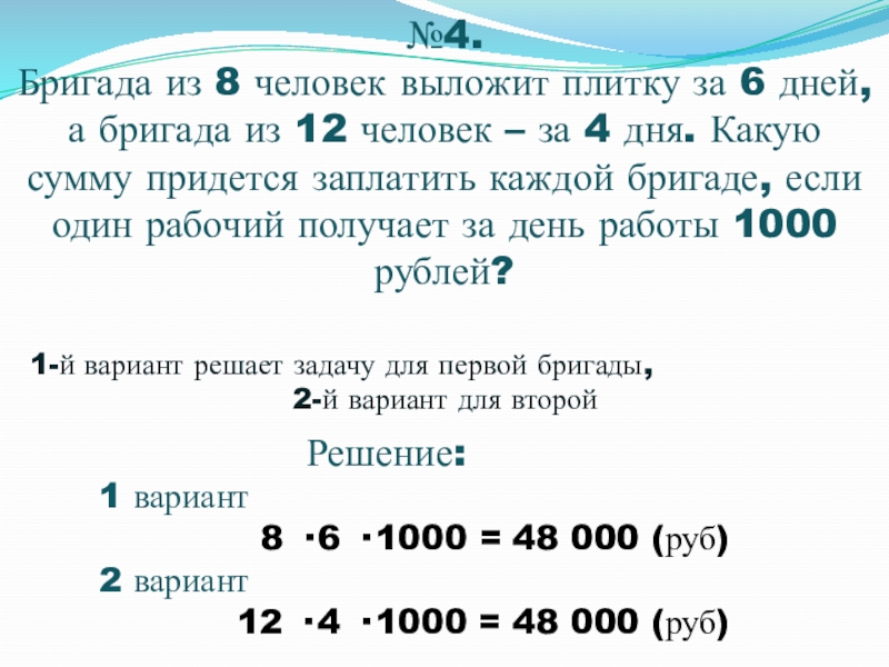 8 · 6 · 1000 = 48 000 (руб) 2 вариант