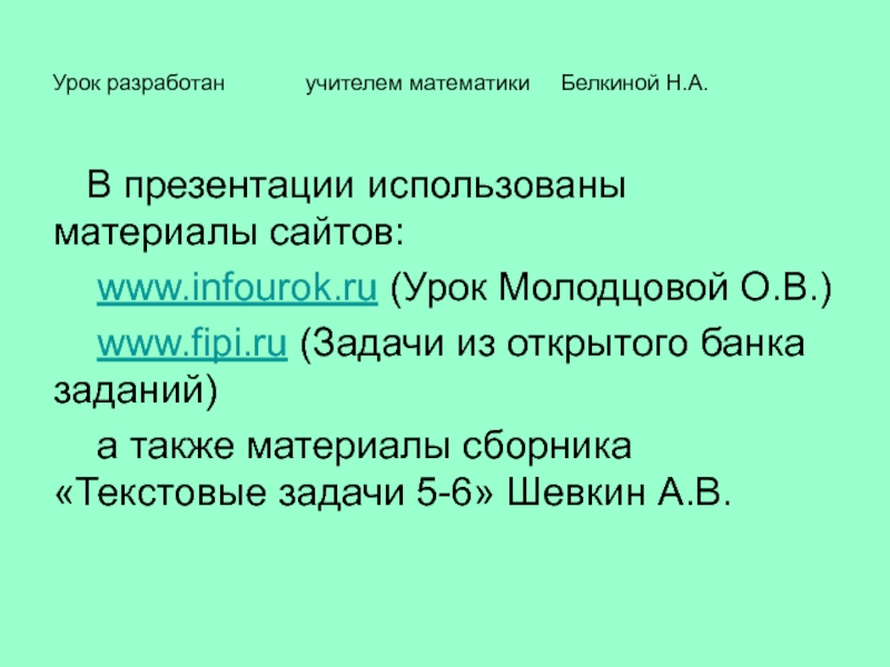а также материалы сборника «Текстовые задачи 5-6» Шевкин А.В.