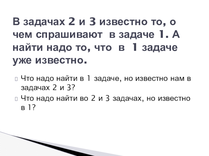 В задачах 2 и 3 известно то, о чем спрашивают в задаче 1. А найти надо то, что в 1 задаче уже известно.