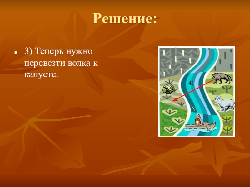 Решение:3) Теперь нужно перевезти волка к капусте.4)