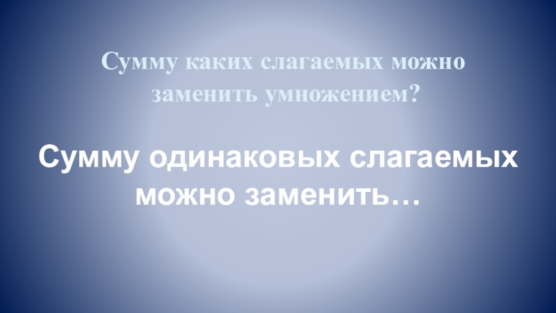 Сумму каких слагаемых можно  заменить умножением? Сумму одинаковых слагаемых можно заменить…