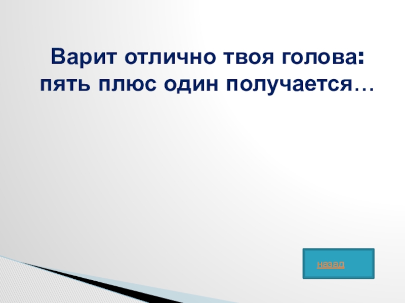 Слайд 34Варит отлично твоя голова: пять плюс один получается…