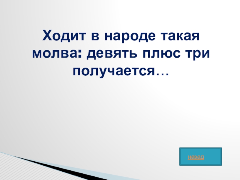Слайд 46Ходит в народе такая молва: девять плюс три получается…