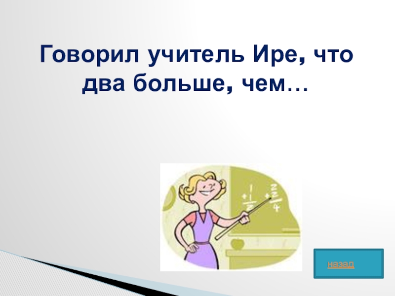 Слайд 37Говорил учитель Ире, что два больше, чем…
