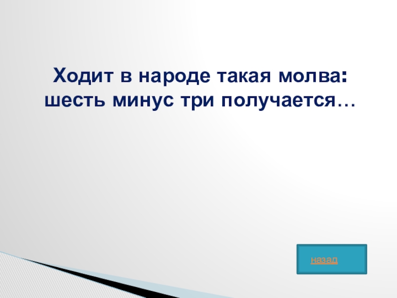 Слайд 36Ходит в народе такая молва: шесть минус три получается…