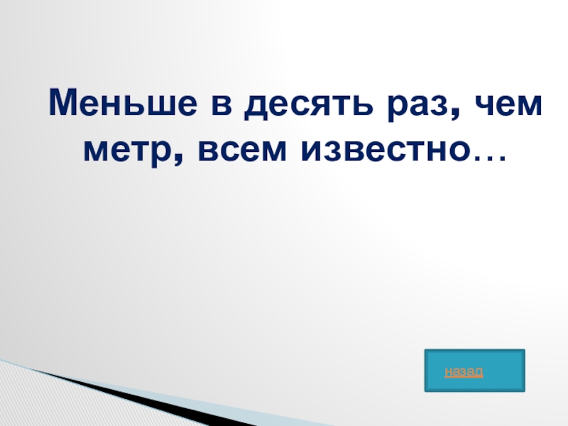 Слайд 38Меньше в десять раз, чем метр, всем известно…