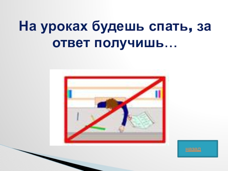 Слайд 43На уроках будешь спать, за ответ получишь…