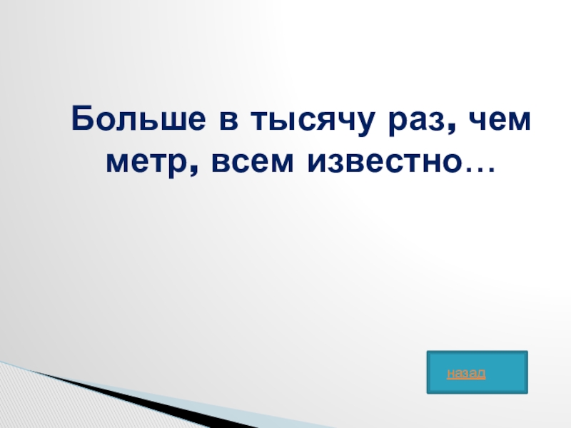 Слайд 47Больше в тысячу раз, чем метр, всем известно…
