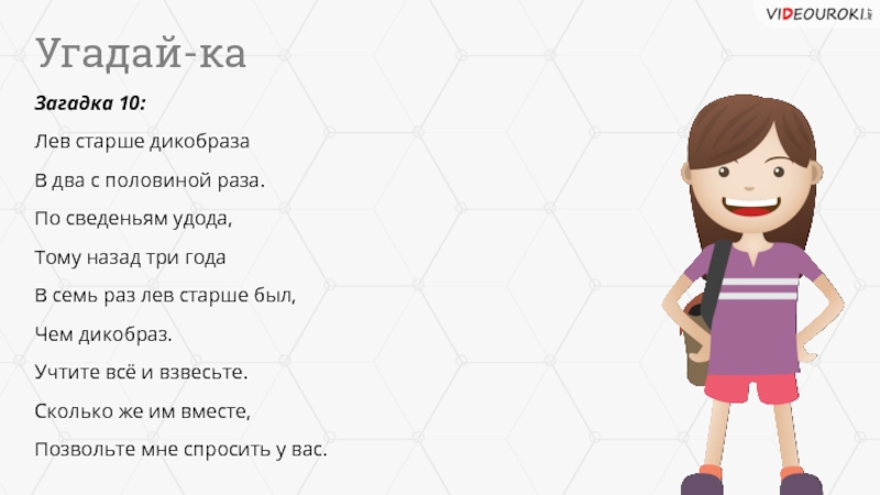 Телёнок = 8 попугаям; Верблюжонок = 9 попугаям