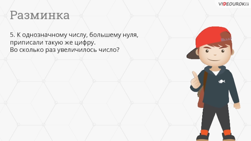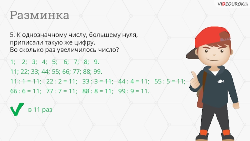 5. К однозначному числу, большему нуля, приписали такую же цифру.