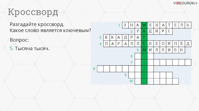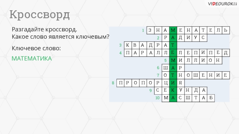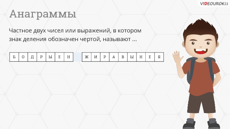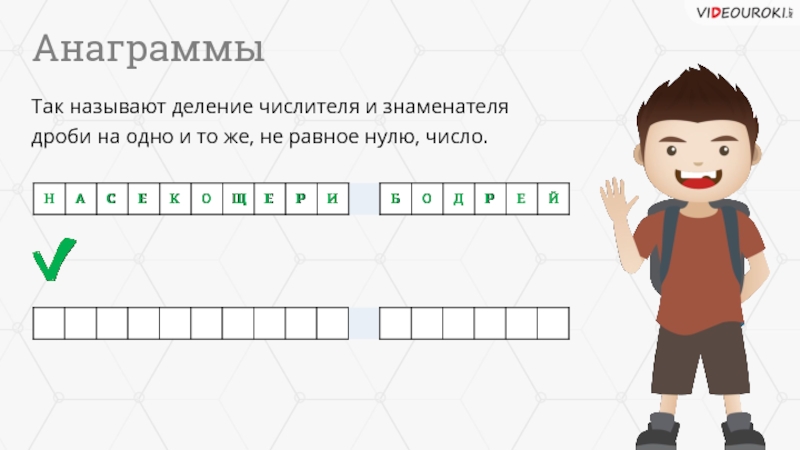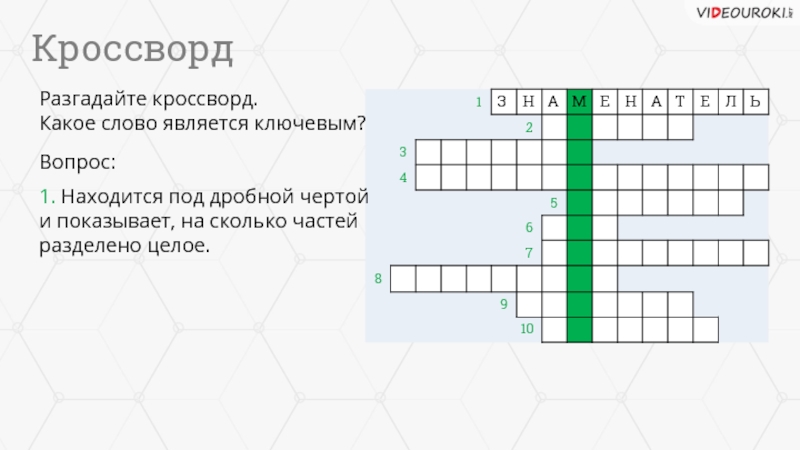 1. Находится под дробной чертой и показывает, на сколько частей разделено