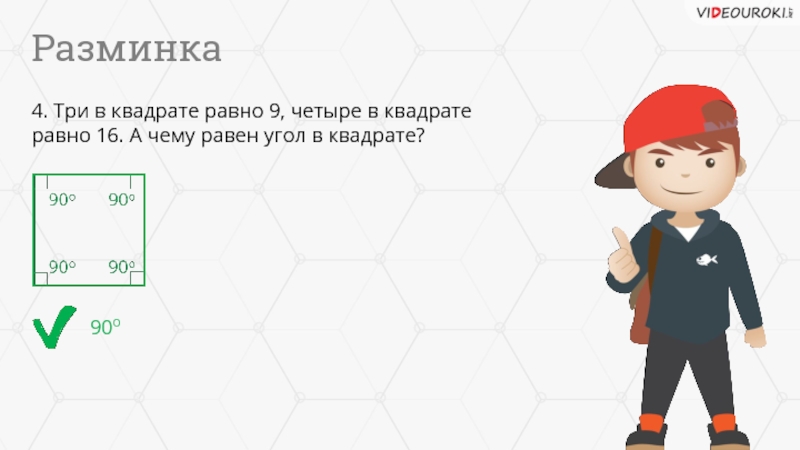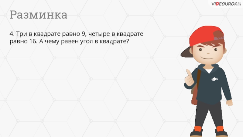 4. Три в квадрате равно 9, четыре в квадрате равно 16.