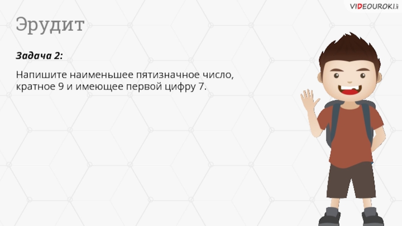 Напишите наименьшее пятизначное число, кратное 9 и имеющее первой цифру