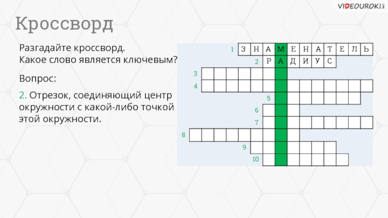 2. Отрезок, соединяющий центр окружности с какой-либо точкой этой окружности.