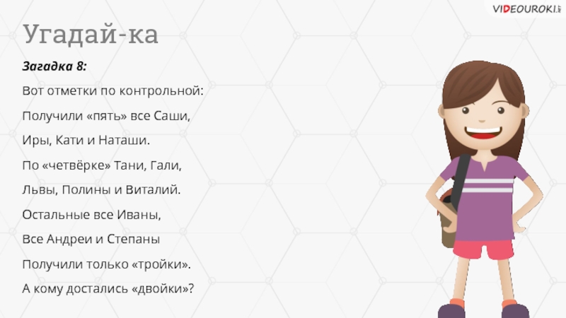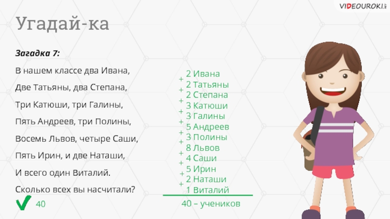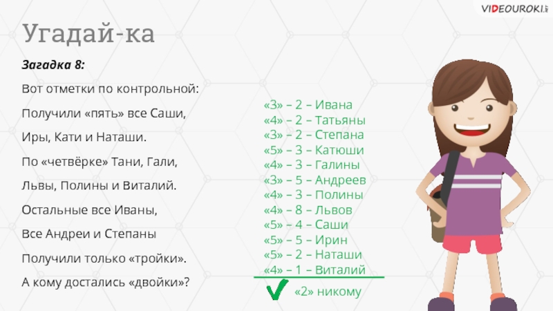 В – М = 3П, Т – П = 7П, В – К = 6П, П + С + Т + В + К + М = 38П.