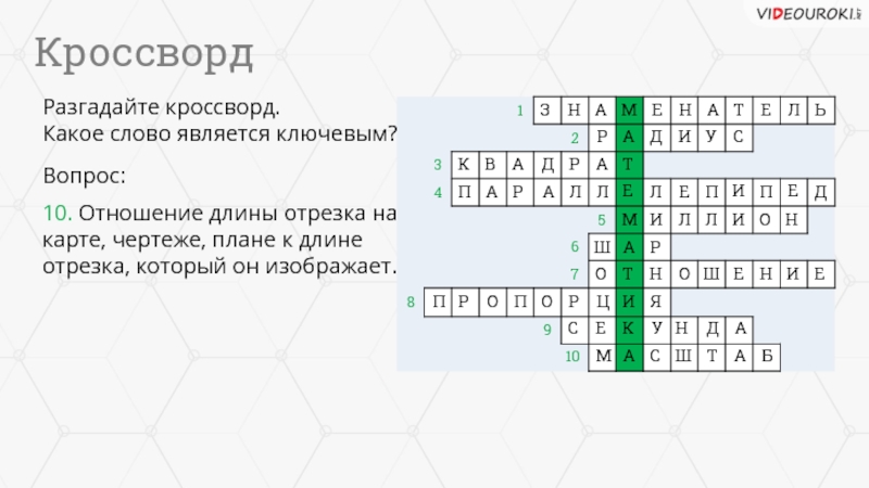 10. Отношение длины отрезка на карте, чертеже, плане к длине отрезка,