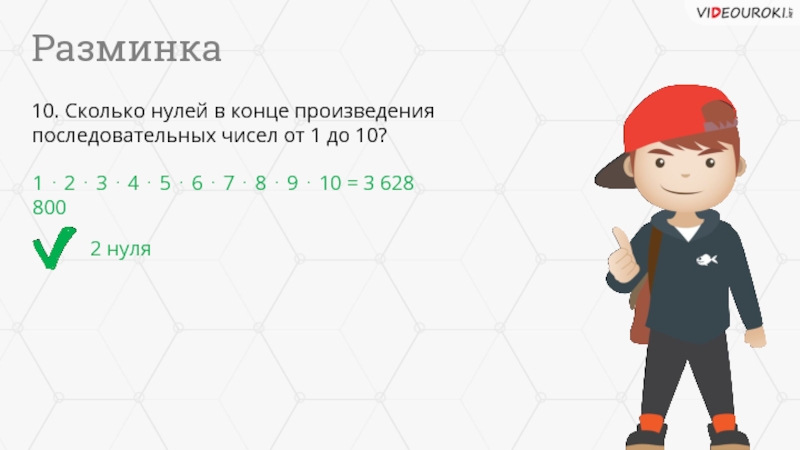 10. Сколько нулей в конце произведения последовательных чисел от 1