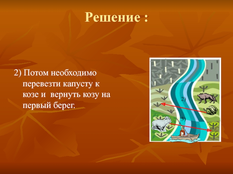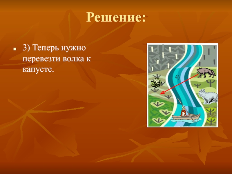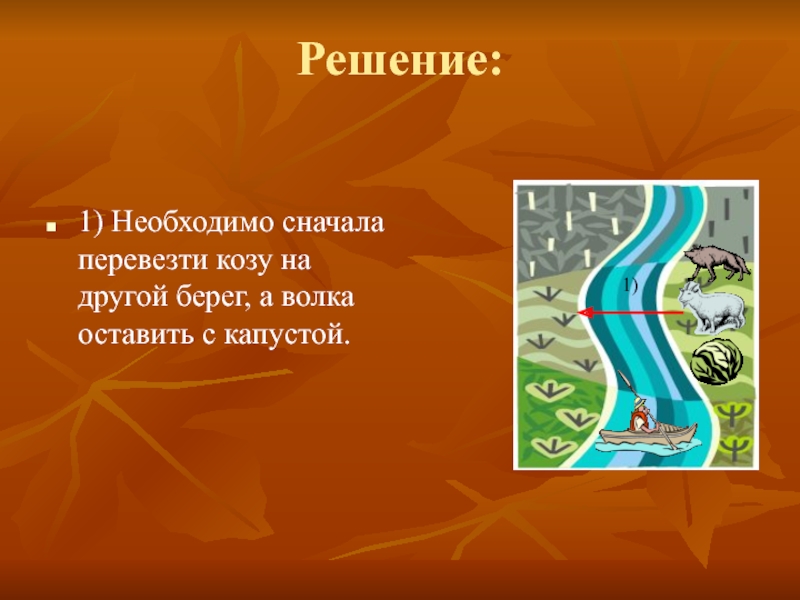 этом нельзя ставить волка с козой, а также нельзя ставить козу с капустой. В лодку помещается только лодочник и ещё один объект.