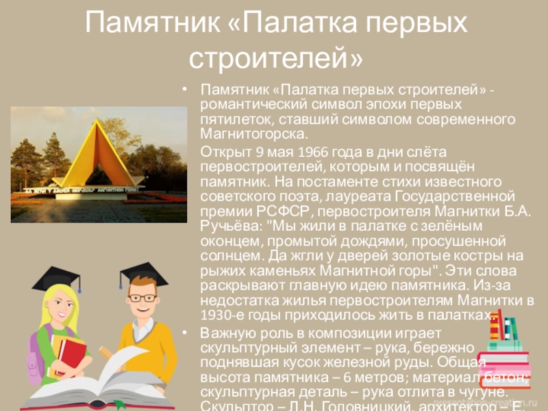 Это сайт презентаций, где можно хранить и обмениваться своими презентациями, докладами, проектами, шаблонами в формате PowerPoint с другими пользователями. Мы помогаем школьникам, студентам, учителям, преподавателям хранить и обмениваться учебными материалами.