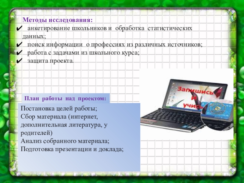 провести анкетирование среди учащихся 6-7 классов и выяснить, какие профессии они хотели бы получить в будущем;