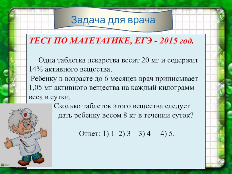 Выписывая больному рецепт, врач должен правильно рассчитать дозировку лекарственного средства.