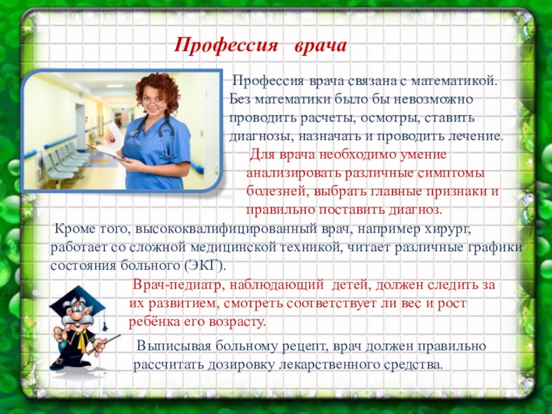 Для врача необходимо умение анализировать различные симптомы болезней, выбрать главные признаки и правильно поставить диагноз.
