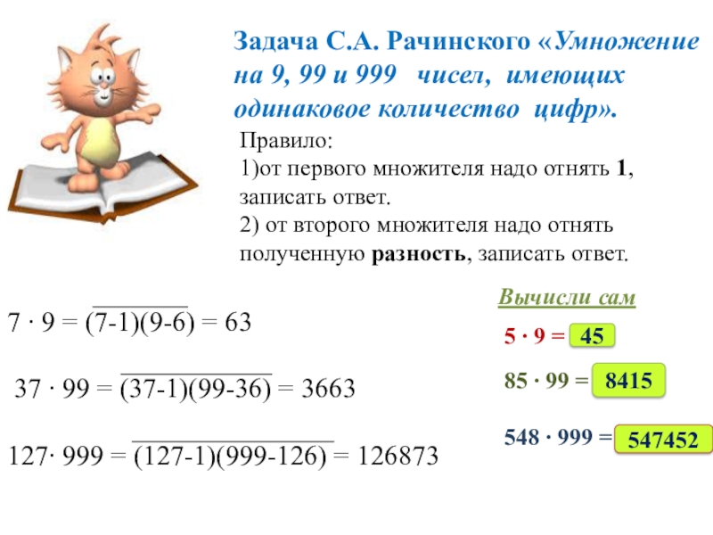 Задача С.А. Рачинского «Умножение на 9, 99 и 999 чисел, имеющих одинаковое количество цифр».