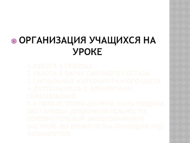ОРГАНИЗАЦИЯ УЧАЩИХСЯ НА УРОКЕ