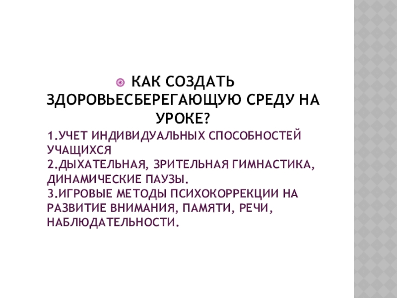 КАК СОЗДАТЬ ЗДОРОВЬЕСБЕРЕГАЮЩУЮ СРЕДУ НА УРОКЕ?