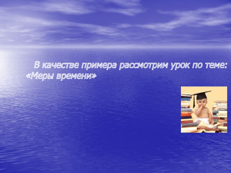 Слайд 5 В качестве примера рассмотрим урок по теме: «Меры времени»