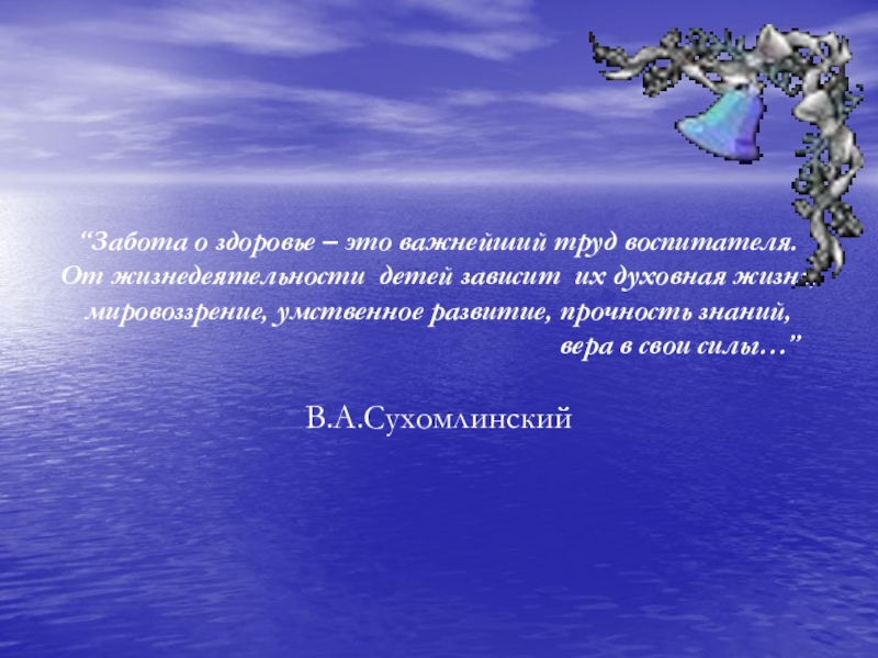 Слайд 2“Забота о здоровье – это важнейший труд воспитателя.
