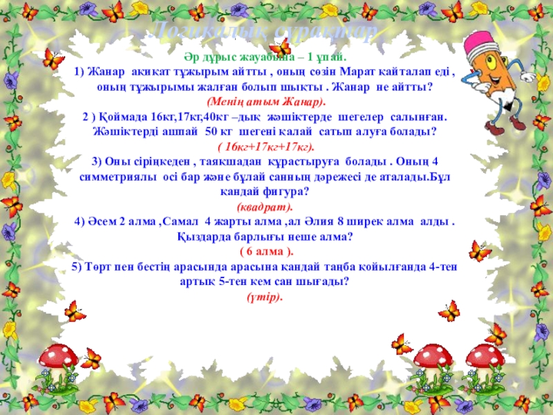 Оқушыларды ұйымшылдыққа,достыққа, алғырлыққа, белсенділікке тәрбиелеу және жеке тұлға етіп қалыптастыру