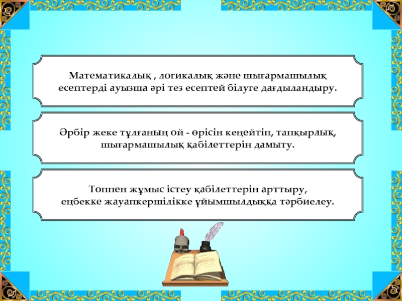 еңбекке жауапкершілікке ұйымшылдыққа тәрбиелеу.