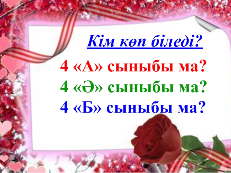 4.Бөлмеде 7 май шам жағулы тұрды. Жанындағын өшірді. Нешеуі қалды?