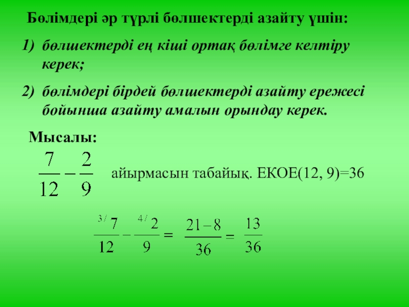 айырмасын табайық. ЕКОЕ(12, 9)=36