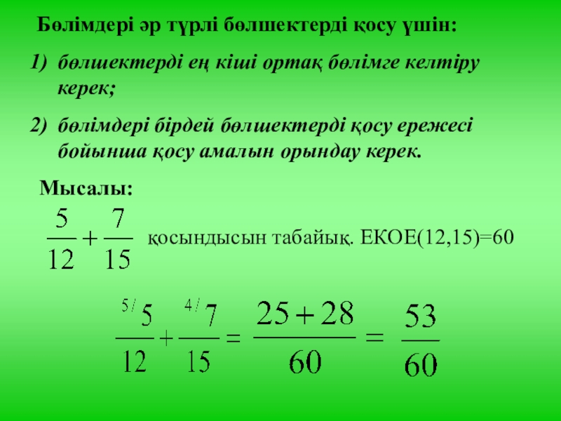 қосындысын табайық. ЕКОЕ(12,15)=60