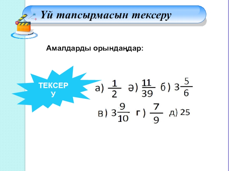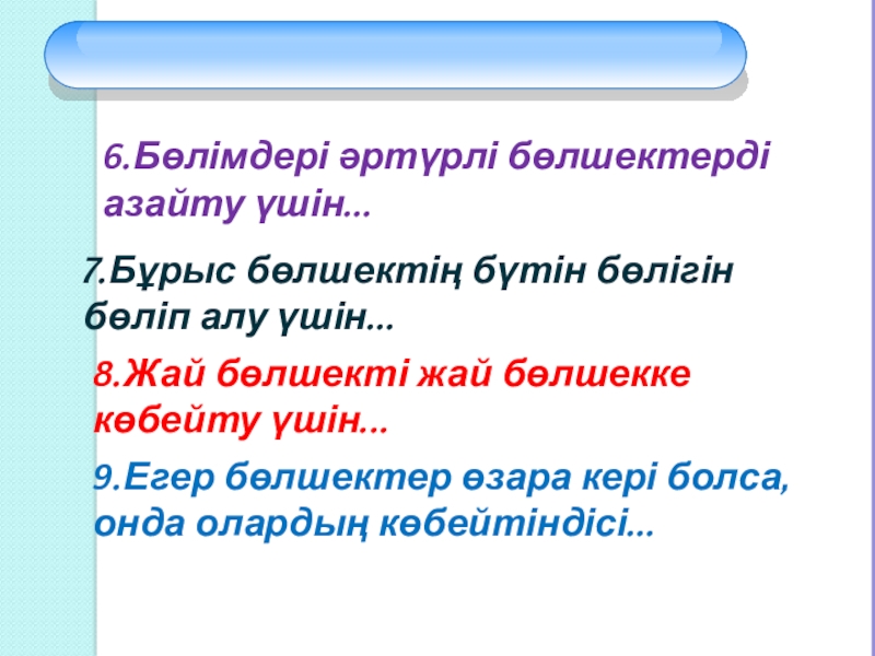 9.Егер бөлшектер өзара кері болса, онда олардың көбейтіндісі...