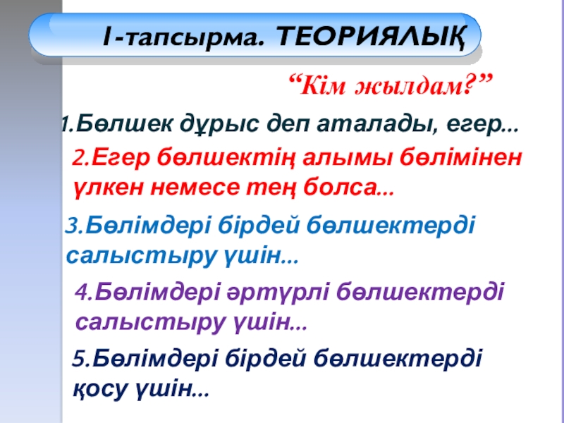 5.Бөлімдері бірдей бөлшектерді қосу үшін...