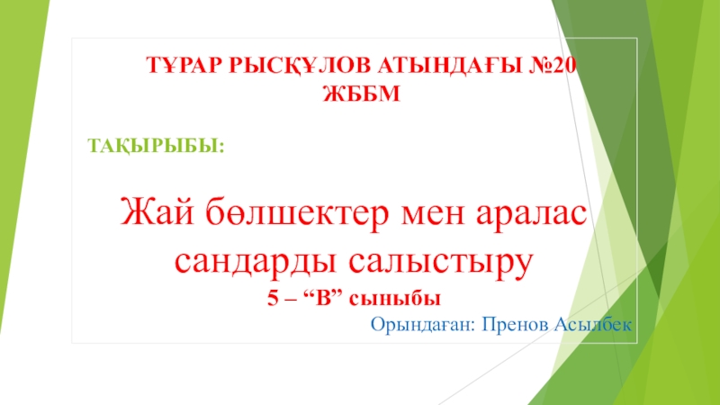 Тұрар рысқұлов атындағы №20 жббм