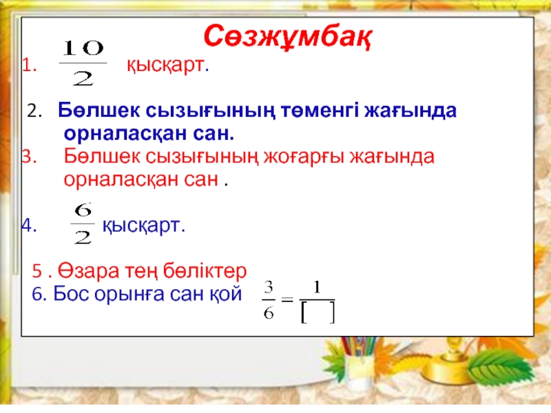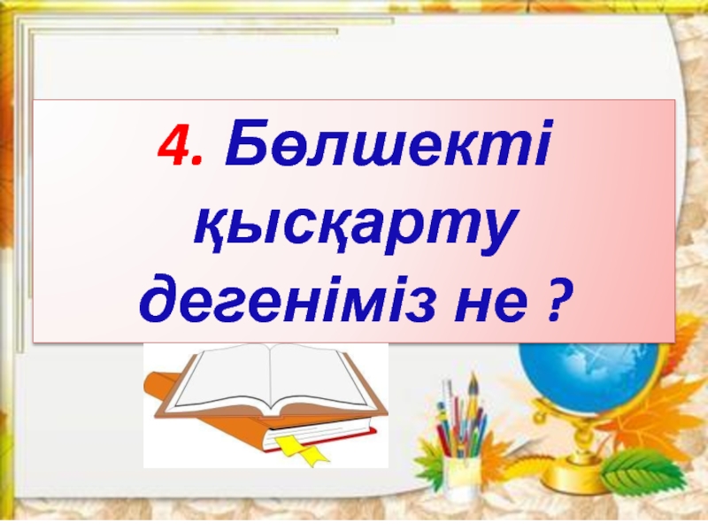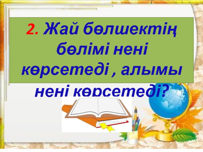 Презентация, доклад на тему Жай бөлшектерді қысқарту. слайд