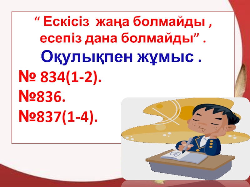 “ Ескісіз жаңа болмайды , есепіз дана болмайды” .     Оқулықпен жұмыс . №