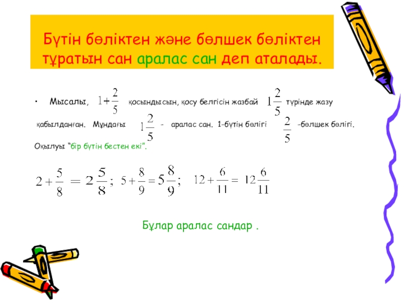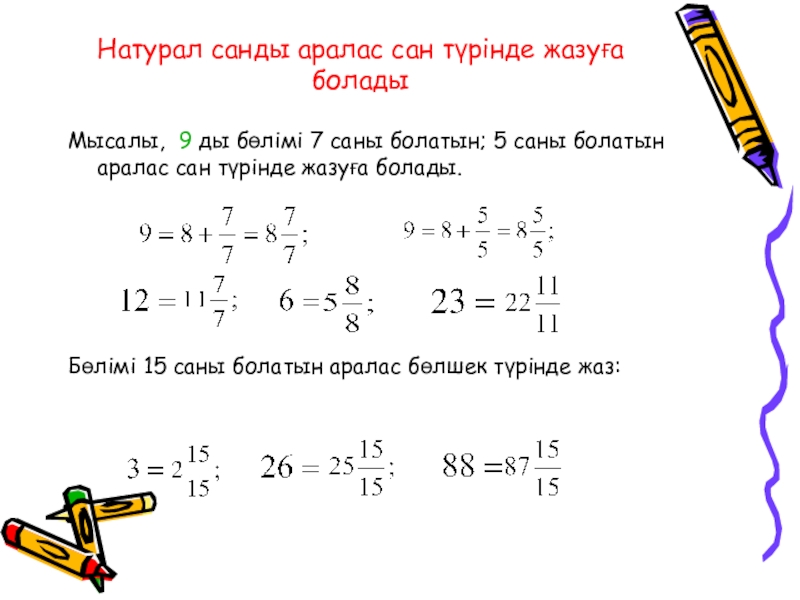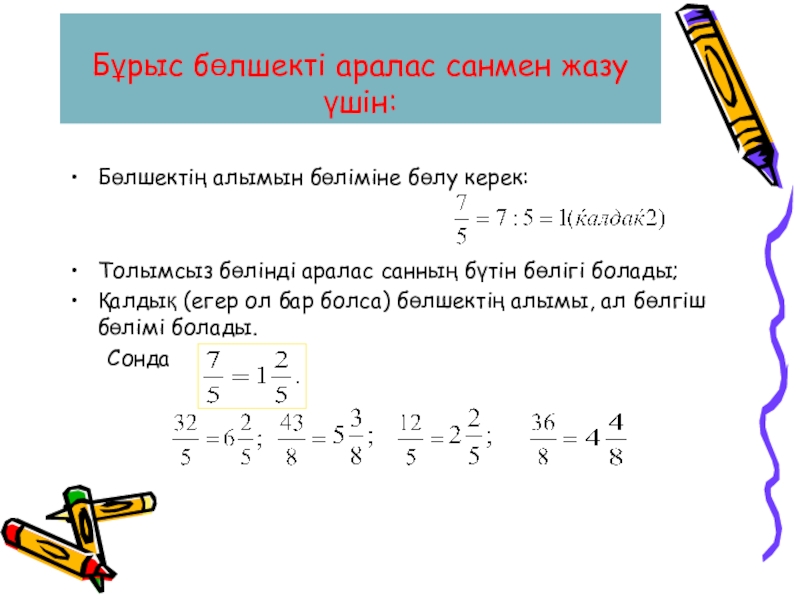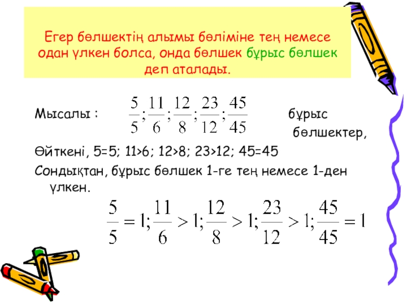Сондықтан, бұрыс бөлшек 1-ге тең немесе 1-ден үлкен.