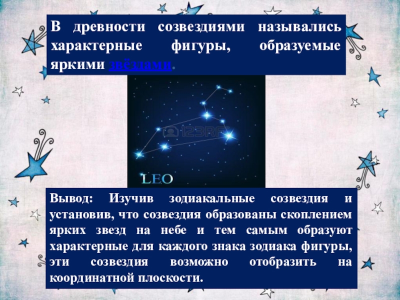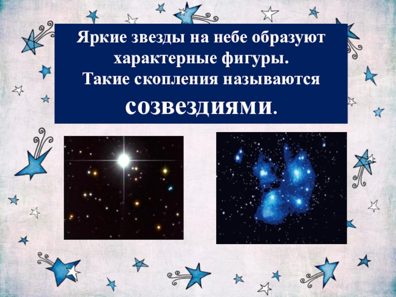 В древности созвездиями назывались характерные фигуры, образуемые яркими звёздами.