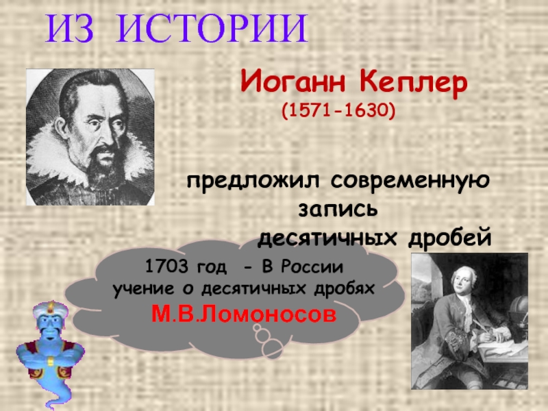 1703 год - В России учение о десятичных дробях М.В.Ломоносов